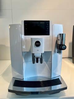 JURA S8 (EB): En ny og opdateret version af S8-serien. Nu med Professional Aroma kværn (P.A.G.2), Sweet Foam funktion og mulighed for at tilberede 27 lækre kaffespecialiteter med og uden frisk mælk. Selvfølgelig brygget på friskkværnede bønner.
